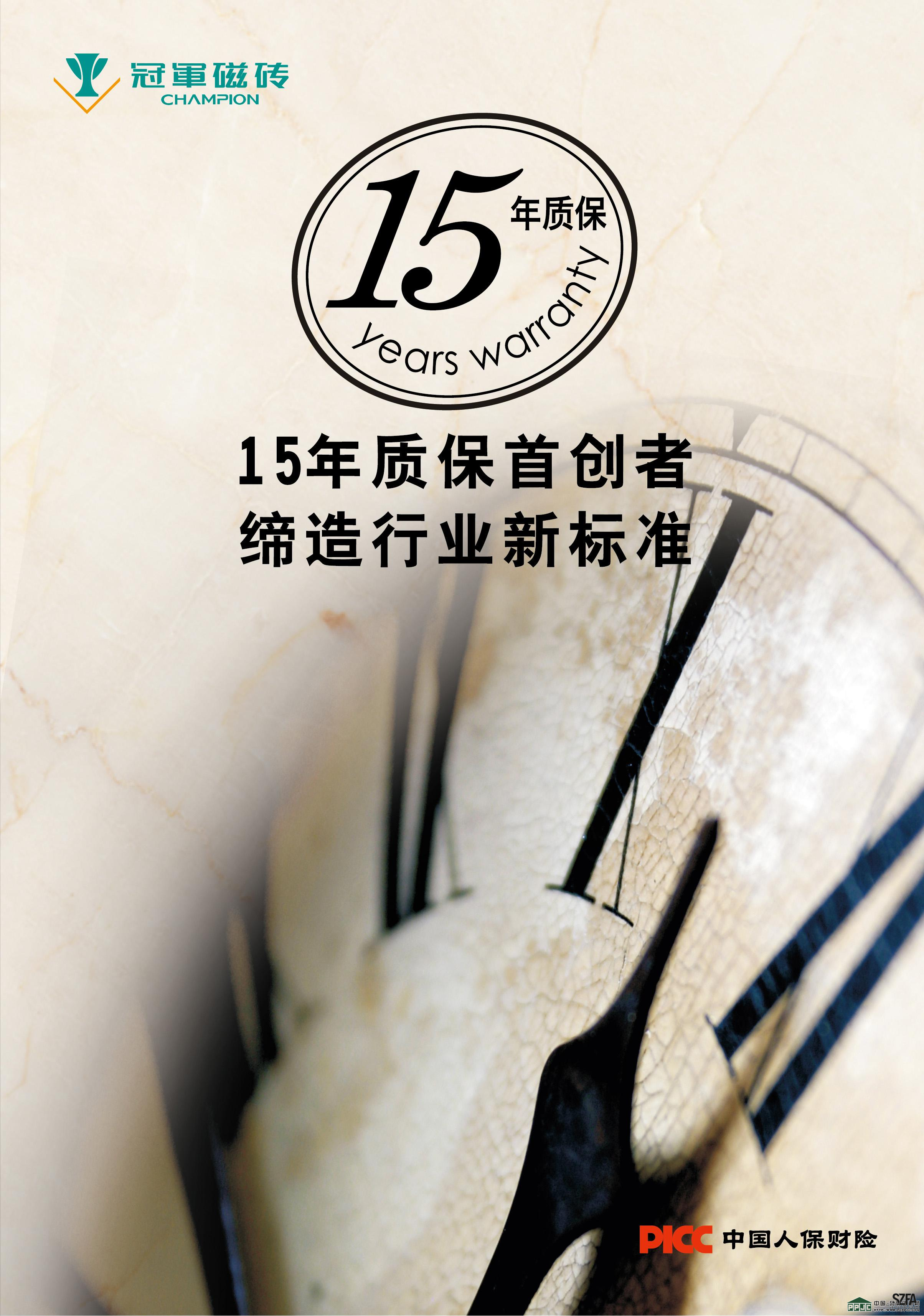 此外,冠軍更率先鄭重承諾:凡購買指定產(chǎn)品于指定場所鋪貼的瓷磚,均享瓷磚15年質(zhì)保服務(wù),從消費者角度設(shè)身處地著想,維護安心使用的權(quán)利。承諾15年瓷磚無變形、無龜裂、無褪色,如在質(zhì)保期限內(nèi)出現(xiàn)問題,冠軍將做出相應(yīng)的補償。