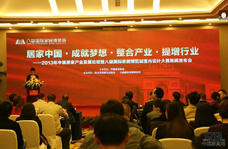 2013年10月29日14:00,由中國家具協(xié)會(huì)主辦,四川省家具行業(yè)商會(huì)、八益國際家居博覽城承辦的2013中國居家產(chǎn)業(yè)發(fā)展論壇暨八益國際家居博覽城室內(nèi)設(shè)計(jì)大賽新聞發(fā)布會(huì)在成都世紀(jì)城天堂洲際大飯店5樓錦江廳隆重舉行,家居行業(yè)劃時(shí)代的巨幕由此開啟。