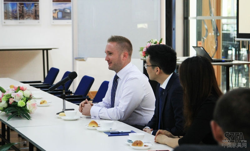 深圳市家具行業(yè)協(xié)會(huì)國際部及戰(zhàn)略資訊與產(chǎn)業(yè)規(guī)劃部執(zhí)行副總裁Jacob C. Vogelsang向一行人介紹了深家協(xié)以及家具行業(yè)的發(fā)展。在觀看了深家協(xié)的宣傳片后,代表團(tuán)一行還參觀了深圳市家具行業(yè)協(xié)會(huì)檢測中心、傳媒集團(tuán)、以及研發(fā)院等多個(gè)部門情況,詳細(xì)了解了協(xié)會(huì)的規(guī)劃、展會(huì)、教育、研發(fā)、傳媒、檢測的六大模塊。