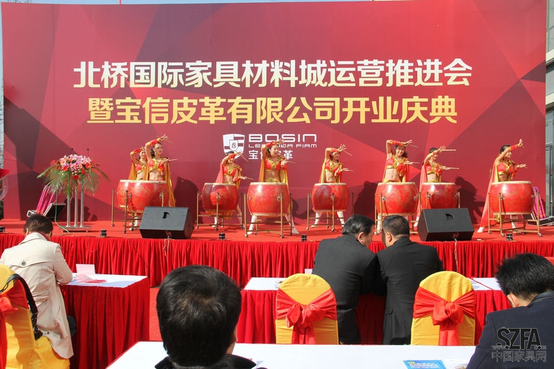今日一早,北橋國際家具材料城的上空禮炮隆隆,彩旗飄飄,處處洋溢出喜慶祥和的氣氛。寶信皮革有限公司在此舉辦了盛大隆重的開業(yè)典禮,宣告正式入駐材料城。在緊鑼密鼓的籌備中,典禮在氣勢磅礴的擊鼓舞曲中拉開帷幕。
