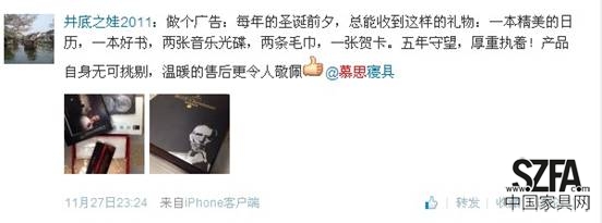 安徽的一位微博用戶發(fā)微博稱:“在沒有成立自己的小家庭前,我就有個夢想買屬于我的慕思,我和老公一直努力,終于攢夠錢去慕思買了自己喜歡的床具和床墊……因為慕思,給了我們拼搏的動力,今后我們還要和慕思一起繼續(xù)奮斗!”