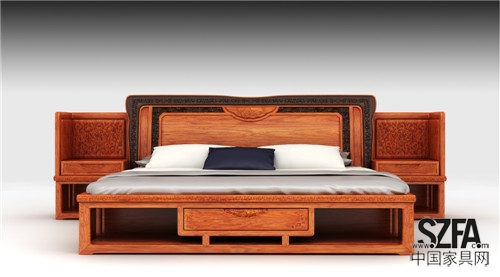 本系列以明式紅木清和設計為基礎,創(chuàng)新加入官帽、旗袍等優(yōu)雅元素,繁簡相宜,將現(xiàn)代時尚簡雅與東方靈性糅合成唯美的生活畫卷。人性化設計,將柔軟靠包融入紅木中,造型雅致,用色時尚,更貼近現(xiàn)代舒適居家生活;床頭設計融入官帽造型,線條舒緩流暢;中間以中式旗袍領口造型點燃優(yōu)雅,更以床頭柜的盤扣元素拉手呼應,意韻深長。