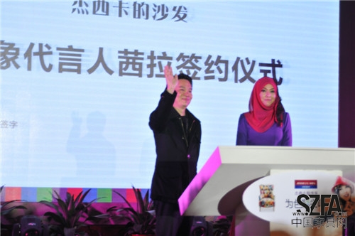 會議現(xiàn)場,《我是歌手》第二季馬來西亞國寶級歌手茜拉高調(diào)亮相,激情獻(xiàn)唱,引爆全場!杰西卡的沙發(fā)董事長尹志良還與其簽訂代言合作協(xié)議。