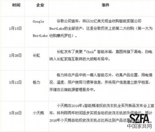 4月2日,三星在韓國、美國、英國、德國等11個(gè)國家推出“三星智能家居”系統(tǒng),初步實(shí)現(xiàn)了通過網(wǎng)絡(luò)連接所有電子家電的“物聯(lián)網(wǎng)時(shí)代”。三星智能家居使用戶通過一個(gè)綜合應(yīng)用軟件就可以隨時(shí)隨地控制管理冰箱、洗衣機(jī)、空調(diào)、電磁爐、機(jī)器人清掃機(jī)等大部分生活家電產(chǎn)品與家庭照明。