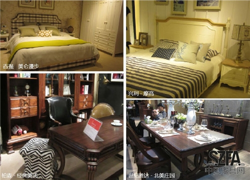 本屆展會(huì),多數(shù)品牌新推出了地中海風(fēng)格、美式風(fēng)格的產(chǎn)品,這些展位都人氣爆棚,與周邊參展現(xiàn)代實(shí)木風(fēng)格的展位形成鮮明對(duì)比。