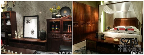 本屆展會(huì)許多老牌勁旅及新銳品牌都推出了新中式風(fēng)格的實(shí)木產(chǎn)品,這類產(chǎn)品以使用名貴木材、雕工精湛和弘揚(yáng)我國傳統(tǒng)文化著稱。