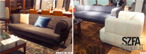 各品牌的布藝沙發(fā)主體色繼續(xù)延續(xù)去年的安全色,而靠包會使用彩色或花紋圖案,并且坐墊邊緣的滾邊會以彩色進(jìn)行勾勒。這樣的配色,既保證了沙發(fā)在客廳空間不會過于跳躍,又能增添一些活躍的氣氛。與此同時,不同部位使用不同色彩的材料,則對沙發(fā)制作的工藝提出了較高的要求。