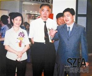 2000年,時任輕工業(yè)部副部長陳善梅在副市長王穗明陪同下參觀左右家私展位。