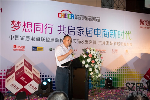 中國家居電商聯(lián)盟代表、皇朝家私執(zhí)行董事謝煥章先生在會(huì)上發(fā)言