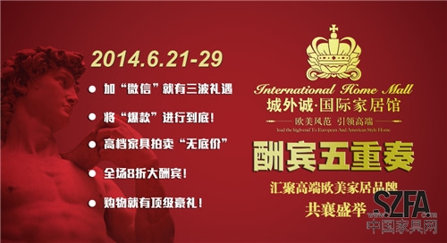 經(jīng)過(guò)近一年的精心籌備,國(guó)際館已于6月7日開(kāi)門營(yíng)業(yè),6月21日至29日,國(guó)際館將為全城百姓奉上開(kāi)業(yè)后的首次讓利活動(dòng)。在21日上午,國(guó)際館也將以盛況空前的啟幕盛典,回饋八方賓朋,啟動(dòng)為期9天的“酬賓五重奏”,分別為,第一重奏:加微信,就有三大實(shí)惠;第二重奏:將“爆款”進(jìn)行到底;第三重奏:家具拍賣“無(wú)底價(jià)”;第四重奏:全場(chǎng)8折大酬賓;第五重奏:購(gòu)物就有頂級(jí)豪禮。