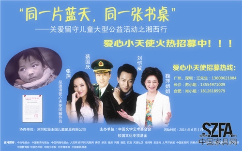 近年來,留守兒童所引發(fā)的一些社會問題,使這個弱勢群體備受社會關(guān)注,作為最具文化特色品牌,松堡王國兒童家具長期關(guān)注孩子的健康成長,時刻秉持“愛孩子、愛地球、愛未來”的核心文化理念,致力為孩子打造一個健康智慧成長平臺,擔當社會責任義不容辭,不惜重金打造“同一片藍天 同一張書桌”關(guān)愛留守兒童湘西行大型公益活動,在全國范圍內(nèi)掀起一場“護蕊”行動;與此同時,松堡王國重磅推出愛心大咖秀鉅惠總動員系列優(yōu)惠活動,親情回饋廣大消費者,優(yōu)惠力度空前絕后,史無前例; 此次活動從6月7日至8月9日在深圳、廣州、長沙、合肥等地同時開展,您將有機會和您的孩子與劉愷威、鞠萍姐姐等明星一起參加一次終身難忘的愛心心靈免費體驗之旅,和一場難以用金錢衡量的愛心教育之旅,名額有限;同時,您的孩子有才藝的話同樣有機會哦!關(guān)愛留守兒童,讓您的孩子得到一次靈魂的升華,讓我們一起行動起來吧!