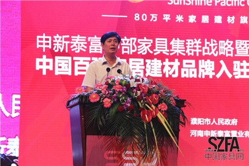 簽約發(fā)布會上,申新泰富投資股份有限公司副董事長蘇先化在致辭中,向各位來賓表示歡迎。蘇先化說,為了更好的推動濮陽建材行業(yè)的和諧快速發(fā)展,為了全面提升整個豫北地區(qū)建材家居的經(jīng)營水準,申新泰富國際商貿(mào)城立足行業(yè)發(fā)展的高度根據(jù)市場消費走向,與濮陽地區(qū)最具實力和影響的家居建材行業(yè)共同打造五星家具建材商貿(mào)航母,從根本上引導(dǎo)消費需求,主導(dǎo)市場走向。同時,申新泰富國際商貿(mào)城與中國百強家居建材行業(yè)強強聯(lián)合,申新泰富利用雄厚的資金實力、豐富的管理經(jīng)驗,把申新泰富國際商貿(mào)城做大做強,促進濮陽商貿(mào)經(jīng)濟的發(fā)展。