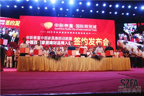 隨后舉行的簽約儀式,將本場活動推向高潮。申新泰富投資股份有限公司副董事長蘇先化,申新泰富投資股份有限公司常務(wù)副總經(jīng)理張南剛,申新泰富國際商貿(mào)城招商總監(jiān)賈少坡,分別與來自廣東、四川的家具品牌代表,濮陽當?shù)刂揖咏ú慕?jīng)銷商簽署戰(zhàn)略合作協(xié)議。中國家具協(xié)會理事長朱長嶺,與來自廣東、四川、北京等地的家具協(xié)會、企業(yè)代表一起,見證了這一歷史性時刻。