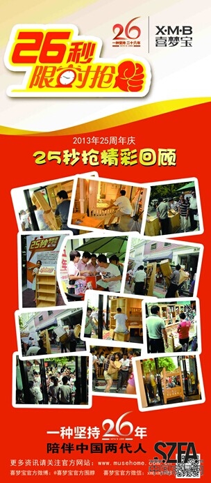 喜夢寶兒童家具”26秒限時搶”活動已經(jīng)開始了,首站定于廈門喜夢寶海滄工廠店舉行。“26秒限時搶”作為喜夢寶兒童家具品牌26周年慶的重頭戲,活動機(jī)制在延續(xù)去年的情況下,時間也從25秒增至26秒。