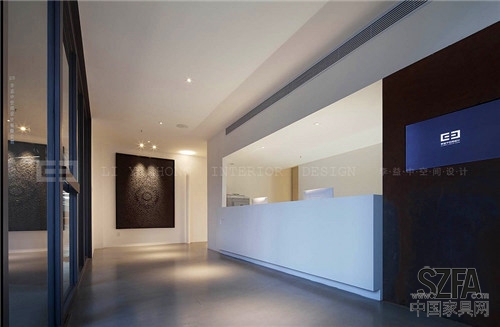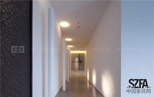 壓縮前廳的空間,用增長(zhǎng)的走廊來(lái)加強(qiáng)進(jìn)入的體驗(yàn)感,延長(zhǎng)從室外到室內(nèi)的心理過渡,“一方面讓上班的同事為進(jìn)入工作狀態(tài)做情緒上的整理和準(zhǔn)備,也為客戶創(chuàng)造一種探尋的體驗(yàn)感”。