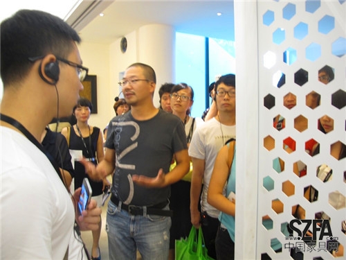 李益中先生一邊引導(dǎo)設(shè)計(jì)師們參觀,一邊講解自己的設(shè)計(jì)理念。
