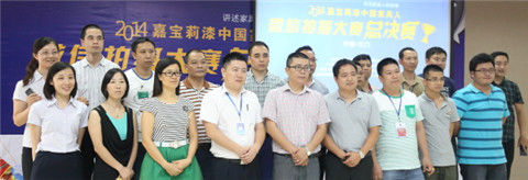 2014年8月5日,歷時(shí)三個(gè)月的“2014年嘉寶莉漆中國家具人微信拍攝大賽”,在歷經(jīng)佛山、廣州、南康、鄭州、溫州、武漢等多城市的線上和線下賽事之后,其最終獎(jiǎng)項(xiàng)在嘉寶莉集團(tuán)總部廣東江門塵埃落定。嘉寶莉集團(tuán)家具漆事業(yè)部常務(wù)副總經(jīng)理周少輝,嘉寶莉集團(tuán)市場部總經(jīng)理周長懷等嘉寶莉集團(tuán)高層,中國整體家居聯(lián)盟等行業(yè)協(xié)會(huì),東鵬潔具、江南辦公家具等家具企業(yè)和新浪家居、搜狐家居、深圳家具等媒體共同見證了獲獎(jiǎng)作品的誕生。