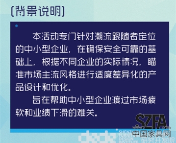針對這種行業(yè)現(xiàn)狀,深圳家具研究開發(fā)院特推出“新產(chǎn)品研發(fā)特惠活動”,旨在幫助中小企業(yè)度過這場企業(yè)難關(guān),增強中小企業(yè)的核心競爭力。
