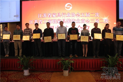 總結(jié)經(jīng)驗,共謀發(fā)展,2014年10月25日江蘇省家具行業(yè)(協(xié)會五屆二次、商會三屆二次)理事擴大會議在徐州開元銀都大酒店順利召開。會議內(nèi)容主要包括總結(jié)今年工作情況,交流下階段工作意見,以及先進協(xié)會和重點骨干企業(yè)介紹經(jīng)驗;為部分常務副會長、副會長、正版正貨企業(yè)、榮獲2014-2016年度江蘇省行業(yè)名牌產(chǎn)品企業(yè)授牌;成立“江蘇家具品牌聯(lián)盟”,并給聯(lián)盟單位頒發(fā)證書;參觀徐州紅星美凱龍和徐州八里賣場。