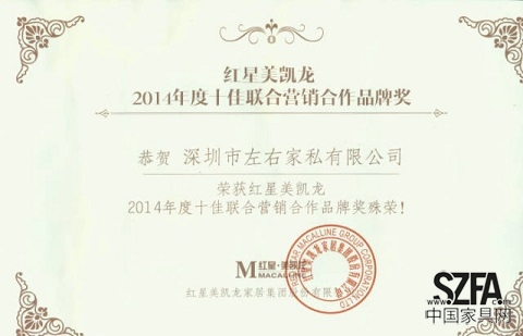 左右家私榮獲“2014年度十佳聯合營銷合作品牌”