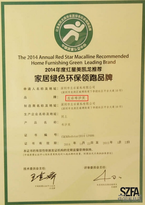 左右布沙發(fā)榮獲“綠色環(huán)保領跑品牌”