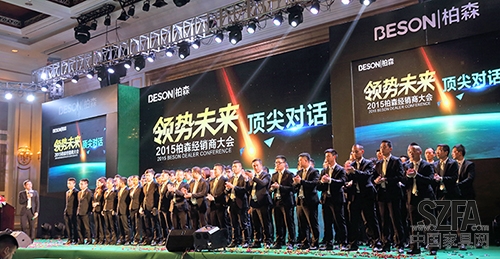 2014年3月15日,柏森家居全國(guó)經(jīng)銷商大會(huì)暨“2015現(xiàn)代實(shí)木家具新品發(fā)布會(huì)”在龍崗區(qū)中海凱驪酒店隆重召開。柏森董事長(zhǎng)黃志輝、執(zhí)行總裁陳安南、董事設(shè)計(jì)總監(jiān)林富源、品牌戰(zhàn)略發(fā)展中心總監(jiān)張運(yùn)金與營(yíng)銷中心全體人員盛裝出席,與經(jīng)銷商、媒體等在場(chǎng)500多人共同分享新品上市。
