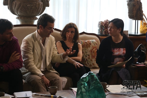 中外設(shè)計(jì)師團(tuán)隊(duì)圍繞“洞悉生活方式 把握設(shè)計(jì)潮流”主題,就2014年度最為流行新生活方式對設(shè)計(jì)產(chǎn)生的影響進(jìn)行討論。歐訊國際設(shè)計(jì)師服務(wù)中心中國市場總經(jīng)理彭娟帶了Paolo Dellapinana、Enzo、Paolo ManciaGiacomo等7位意大利設(shè)計(jì)師,臺灣大易國際、邱春瑞設(shè)計(jì)事務(wù)所總設(shè)計(jì)師邱春瑞領(lǐng)銜中國十多位優(yōu)秀設(shè)計(jì)師歡迎遠(yuǎn)道而來的意大利朋友,就中意設(shè)計(jì)理念展開激烈探討。