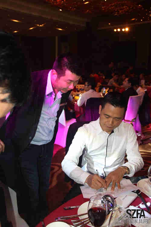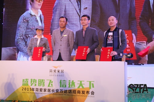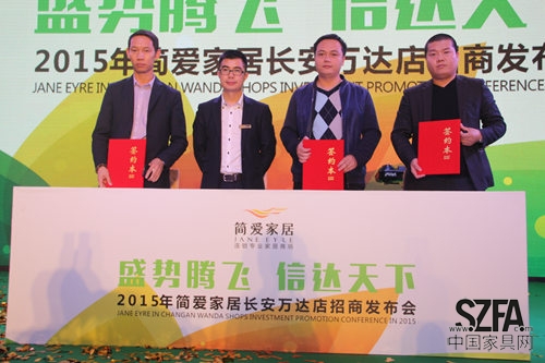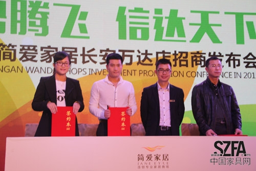 簡歐家居曠董事長現(xiàn)場簽約交付進駐簡愛長安萬達店的定金