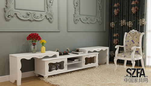 再看這套“維納斯”系列的法式客廳家具。層次分明的電視柜,讓客廳看起來(lái)就很有品味。
