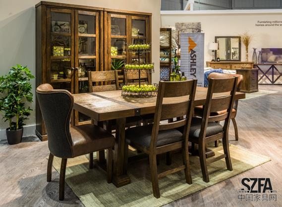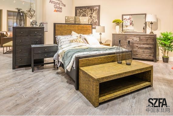 在此次展會(huì)上,Ashley愛室麗家居品牌在其千余平方的超大展廳內(nèi),展示了60多套美式家居產(chǎn)品并涵蓋客廳、臥室、餐廳和書房等全屋家具,更為每一種風(fēng)格系列搭配了精美的家居飾品,床品、燈具、花瓶、抱枕等一應(yīng)俱全,充分展示了品牌及公司的雄厚實(shí)力。眾多靈感涌動(dòng)的新品配上美輪美奐的家居飾品。其中全新推出的新品Urbanology都市工業(yè)風(fēng)憑借其鮮明的個(gè)性更是令消費(fèi)者流連忘返。Urbanology都市工業(yè)風(fēng)的精彩在于通過(guò)簡(jiǎn)練的線條和做舊的飾面讓粗獷的整體風(fēng)格中體現(xiàn)出精致,再通過(guò)舒適柔軟與自然感官的元素將精致細(xì)節(jié)融入粗曠的整體風(fēng)格之中,顯得剛?cè)岵?jì),提升了設(shè)計(jì)品味及舒適度。