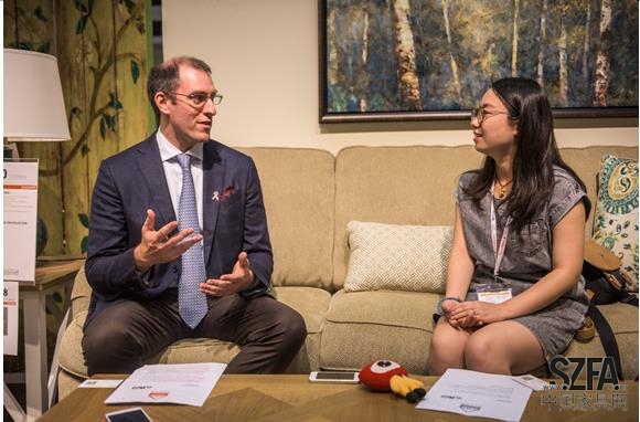 Paul Dotta 先生為各大主流媒體介紹Ashley愛室麗家居展位