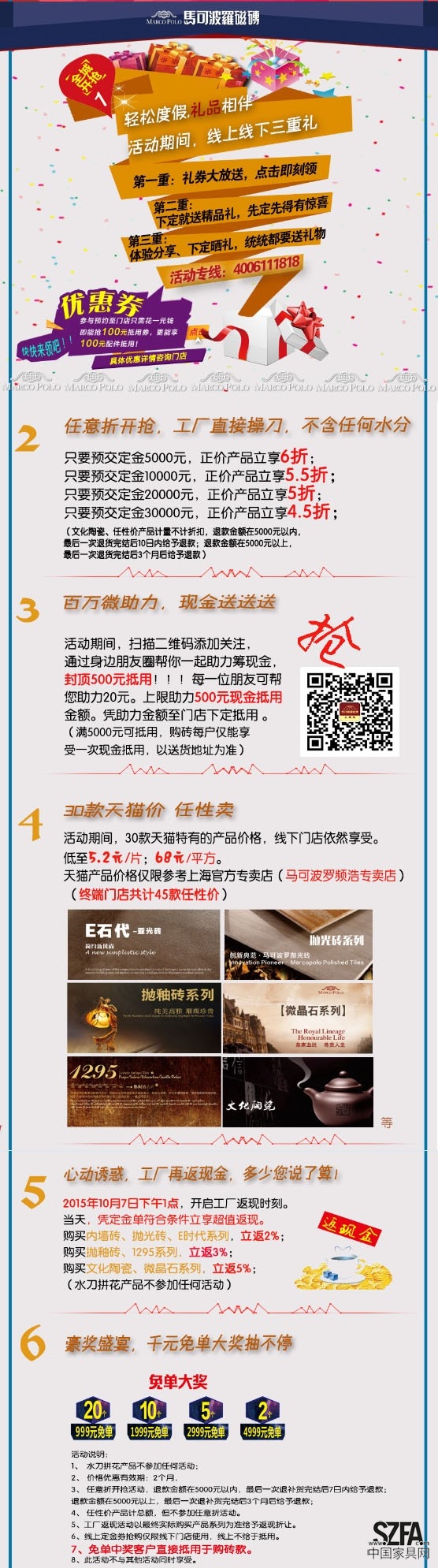更多優(yōu)惠活動(dòng)詳情,可致電活動(dòng)專(zhuān)線。消費(fèi)者也可光臨馬可波羅各大店面現(xiàn)場(chǎng)體驗(yàn),相信一定會(huì)有驚喜收獲。