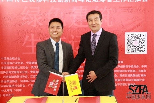 2015中國(guó)特藝裝修科技創(chuàng)新高峰論壇組委會(huì)與總冠名單位海棠花開戰(zhàn)略簽約,攜手打造綠色建筑生態(tài)運(yùn)營(yíng)系統(tǒng)