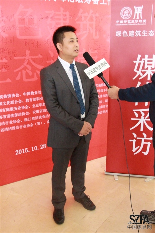 組委會(huì)中國(guó)特藝裝修聯(lián)盟會(huì)長(zhǎng)劉徑 接受新華網(wǎng)的采訪