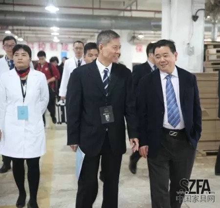 仁豪董事長(zhǎng)尤國(guó)忠陪同原深家協(xié)會(huì)長(zhǎng)黃偉業(yè)巡廠
