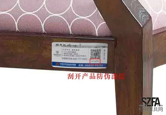 產(chǎn)品防偽驗證碼 貼在家具產(chǎn)品背面右上角。