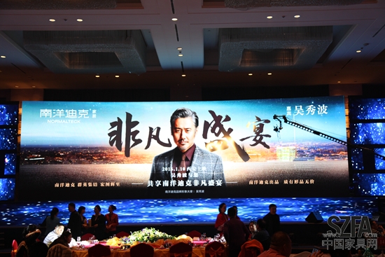 2016年1月10日,南洋迪克家居“非凡盛宴”商務(wù)年會(huì)在西安舉行。南洋迪克品牌形象大使吳秀波親臨現(xiàn)場(chǎng),這是吳秀波代言南洋迪克之后首次亮相古城西安。本次年會(huì)上南洋迪克正式發(fā)布了兩款旗艦新品——新北歐時(shí)尚主義實(shí)木家具“金木凡品”和新美輕奢主義實(shí)木家具“格倫代爾”。同時(shí)解讀了南洋迪克2016年的戰(zhàn)略發(fā)展規(guī)劃。