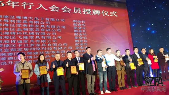 佛山市家具行業(yè)協(xié)會(huì)左鼐強(qiáng)會(huì)長、左建華理事長為新入會(huì)會(huì)員授牌