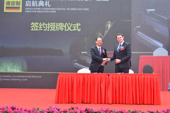 落成典禮上,德國羅森海姆大學(xué)國際部主任西蒙先生,和新紅陽集團(tuán)控股總裁朱玉倫先生,一起為搭建中德智能家居職業(yè)教育培訓(xùn)與現(xiàn)代家具研發(fā)學(xué)院簽訂了合作協(xié)議?,F(xiàn)場,西蒙先生和朱玉倫先生共同為中德智能家居職業(yè)教育培訓(xùn)與現(xiàn)代家具研發(fā)學(xué)院揭牌。