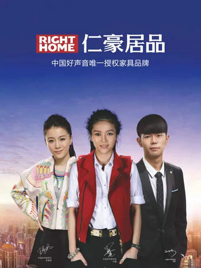 2014年,仁豪家具攜手“中國好聲音”戰(zhàn)略合作,開啟了品牌由行業(yè)向終端的轉(zhuǎn)型,依托仁豪家具終端渠道,借助“中國好聲音”的知名度,深化仁豪家具品牌在消費者心中的形象,并在服務(wù)體系上把需求做強,最終完成仁豪家具終端消費者品牌的形象塑造。