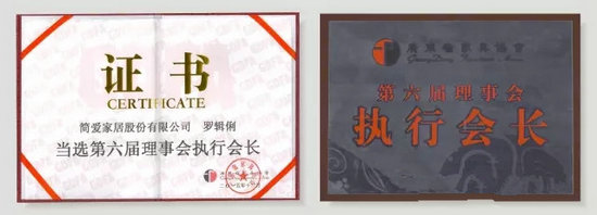 簡愛家居創(chuàng)始人/董事長 羅輯俐女士因其個人對推動廣東省家具/建材專業(yè)連鎖賣場的進步所作出的貢獻,及其在行業(yè)內(nèi)的影響力和號召力,連任家協(xié)第六屆理事會執(zhí)行會長并獲得“功勛人物獎”;簡愛家居股份有限公司為省家協(xié)第六屆執(zhí)行會長單位為“資深會員”單位。