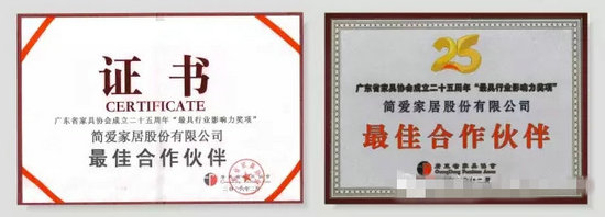 簡愛家居因其開拓性的經(jīng)營理念和前瞻性的營銷模式,為其贏得了行業(yè)內(nèi)較高的知名度與美譽度,在此次會中榮獲“最具行業(yè)影響力獎項--最佳合作伙伴”。該獎項綜合考量品牌知名度、大眾口碑、行業(yè)創(chuàng)新能力等多方面因素,評選出在行業(yè)內(nèi)中有突出貢獻和具有影響力的品牌。