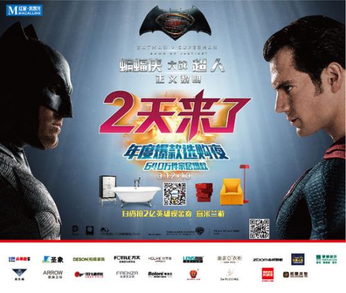 3月12日至3月13日,家居行業(yè)開(kāi)年第一波最大規(guī)模促銷,紅星美凱龍“2天來(lái)了”即將在全國(guó)紅星美凱龍商場(chǎng)登陸。本次“2天來(lái)了”是紅星美凱龍攜手華納《蝙蝠俠大戰(zhàn)超人》打造的英雄級(jí)大促活動(dòng),640萬(wàn)件家居爆款共同讓利,拉開(kāi)2016年度促銷大戲。
