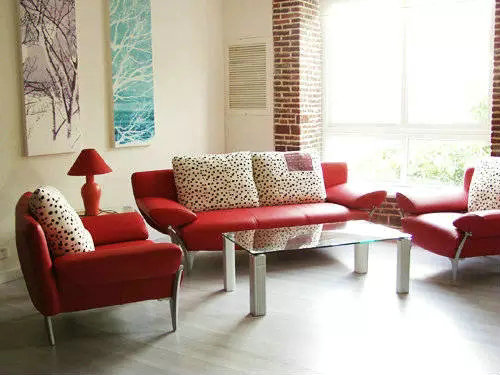 “斑點(diǎn)靠枕很好的均衡了張揚(yáng)的紅色”