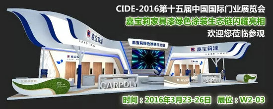 2016年3月23日-26日,嘉寶莉集團(tuán)將攜綠色涂裝生態(tài)鏈?zhǔn)⒋罅料嗟谑鍖弥袊?guó)國(guó)際門業(yè)展覽會(huì)。屆時(shí),我們將于北京中國(guó)國(guó)際展覽中心新館(北京市順義區(qū)天竺裕翔路88號(hào))W2館03展位恭迎您的蒞臨!