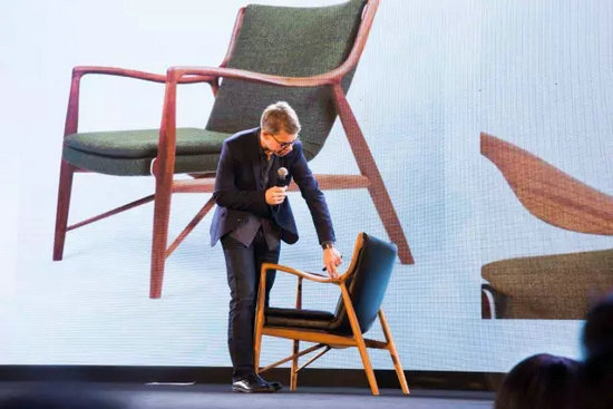 Onecollection總監(jiān)Hans Henrik Sørensen與我們帶來“Finn Juhl - 丹麥現(xiàn)代設(shè)計(jì)的藝術(shù)大師”的演講,同時(shí)他向觀眾們展示了Finn Juhl的46號沙發(fā)、詩人沙發(fā),鵜鶘椅和45號椅等經(jīng)典的作品。他表示,F(xiàn)inn Juhl大師的作品注重強(qiáng)調(diào)融合家具之間的情感的紐帶,強(qiáng)調(diào)互動感。極具前瞻性的設(shè)計(jì)理念讓現(xiàn)場的觀眾朋友們受益匪淺。