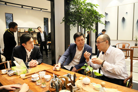 陳寶光在與羽珀董事長何鎮(zhèn)均、總裁于立勝交流