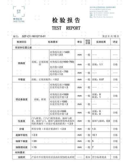 ②角幾D3-JT1070:常規(guī)性能:力學(xué)安全性能;環(huán)保性能:木家具中整體甲醛釋放量、木家具整體總揮發(fā)性有機化合物。