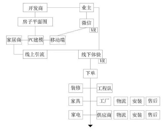 這個新的商業(yè)模式,使開發(fā)商、業(yè)主和家居商連接起來,客戶是精準(zhǔn)的,線上就不那么重要了,只是手段之一,主要是通過開發(fā)商,然后進入移動端,然后線下體驗下單,這之中還利用VR工具,使業(yè)主覺得好像身臨其境,所見即所得,確定了自己所要的裝修、家具、家紡……