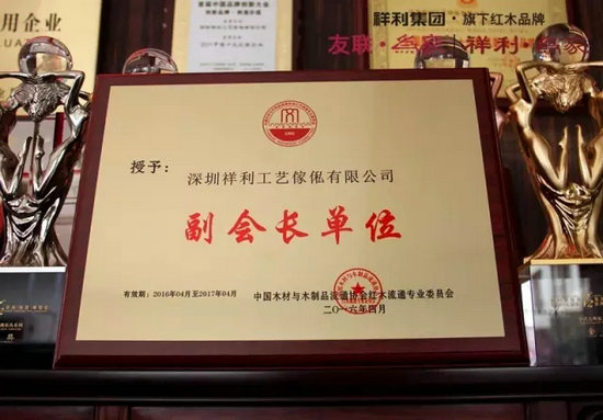 中國木材與木制品流通協(xié)會紅木流通專業(yè)委員會副會長單位證書、副會長證書